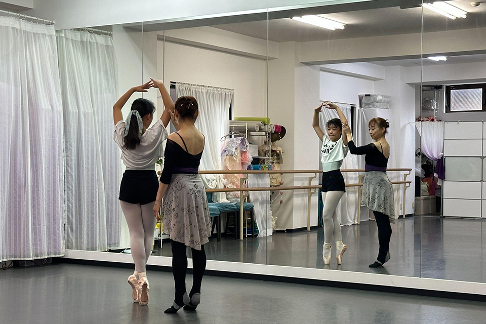 あとは東京バレエ団のオープンクラスやバレエ学校で教えている先生にも来ていただいていますので最新のレッスン方法や考え方、または動きなども教えていただくことができます。