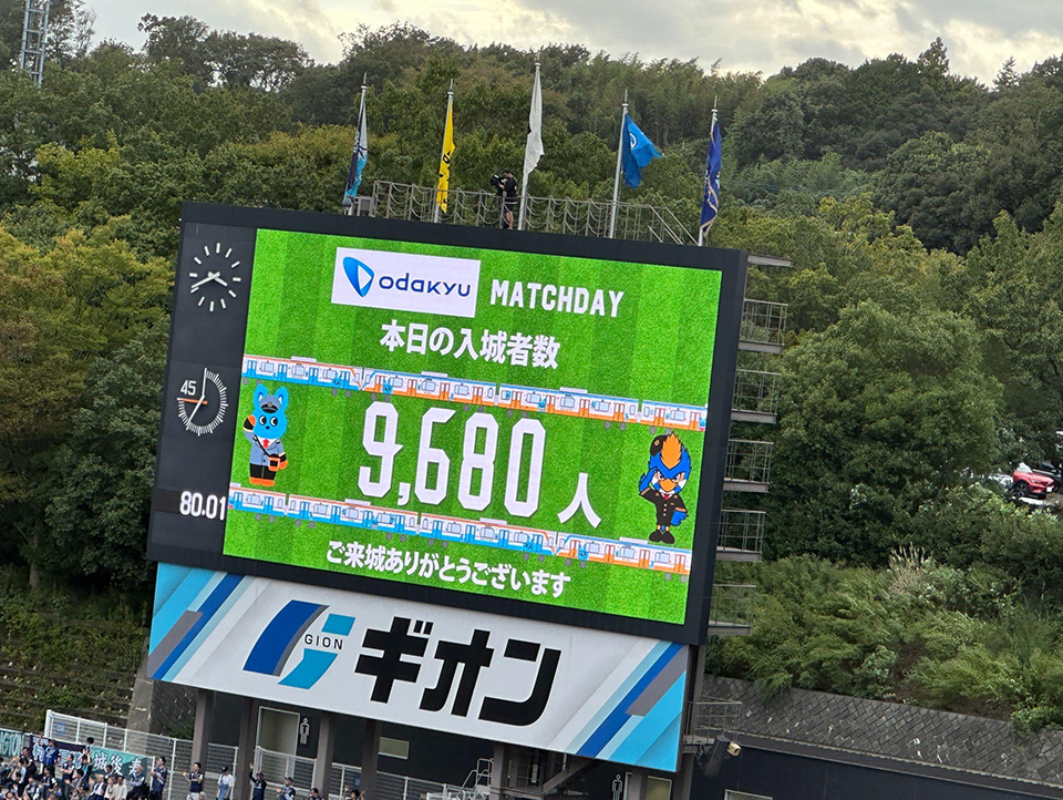 今日は小田急マッチデーということで、応援コメントを書いてシールがもらえたり、入場時にはランダムでキーホルダーがもらえたり、様々なイベントが行われていました。