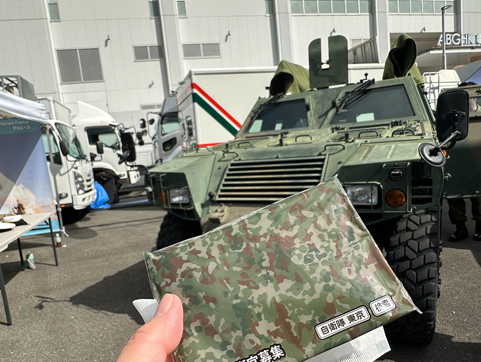 自衛隊のくるま(抽選会の参加賞は珍しい迷彩柄のティッシュでした)
