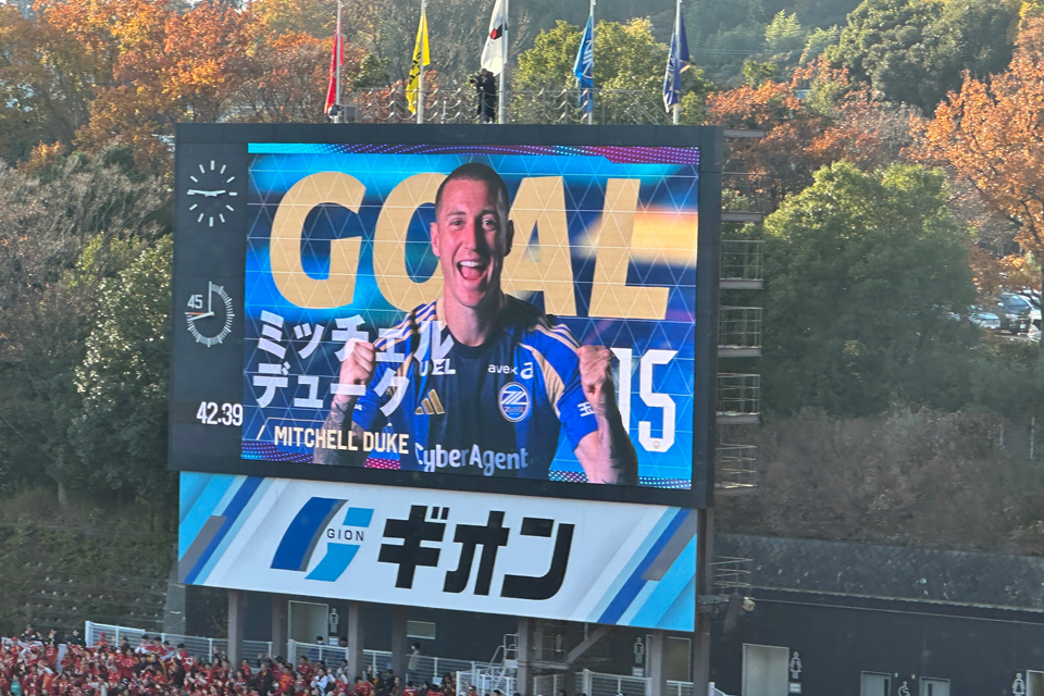 試合は、相手のペースで入った印象です。しかし、しっかり守り相手にゴールを割らせることはありません。42分にMデューク選手のゴールで先制します。ドレシェヴィッチ選手からのボールに頭で合わせ、相手ゴールキーパーやディフェンダーが前にでていたところ、ボールがゴールに入りました。先制すると試合展開も安定してきました。このまま1-0で前半が終了しました。
